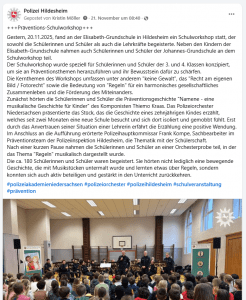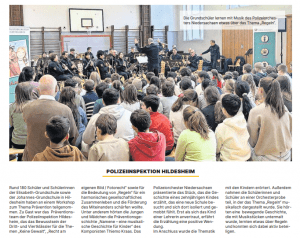Am Donnerstag war dann das Präventionspolizeiorchester Niedersachsen zu Besuch. Wir sahen ein, spannendes, lustiges und interessantes Musical zum Thema Sicherheit, Smartphonenutzung und Cybermobbing. Am Ende von diesem Beitrag befinden sich verschiedene Berichte (unter anderem aus der HAZ) von diesem tollen Event.
