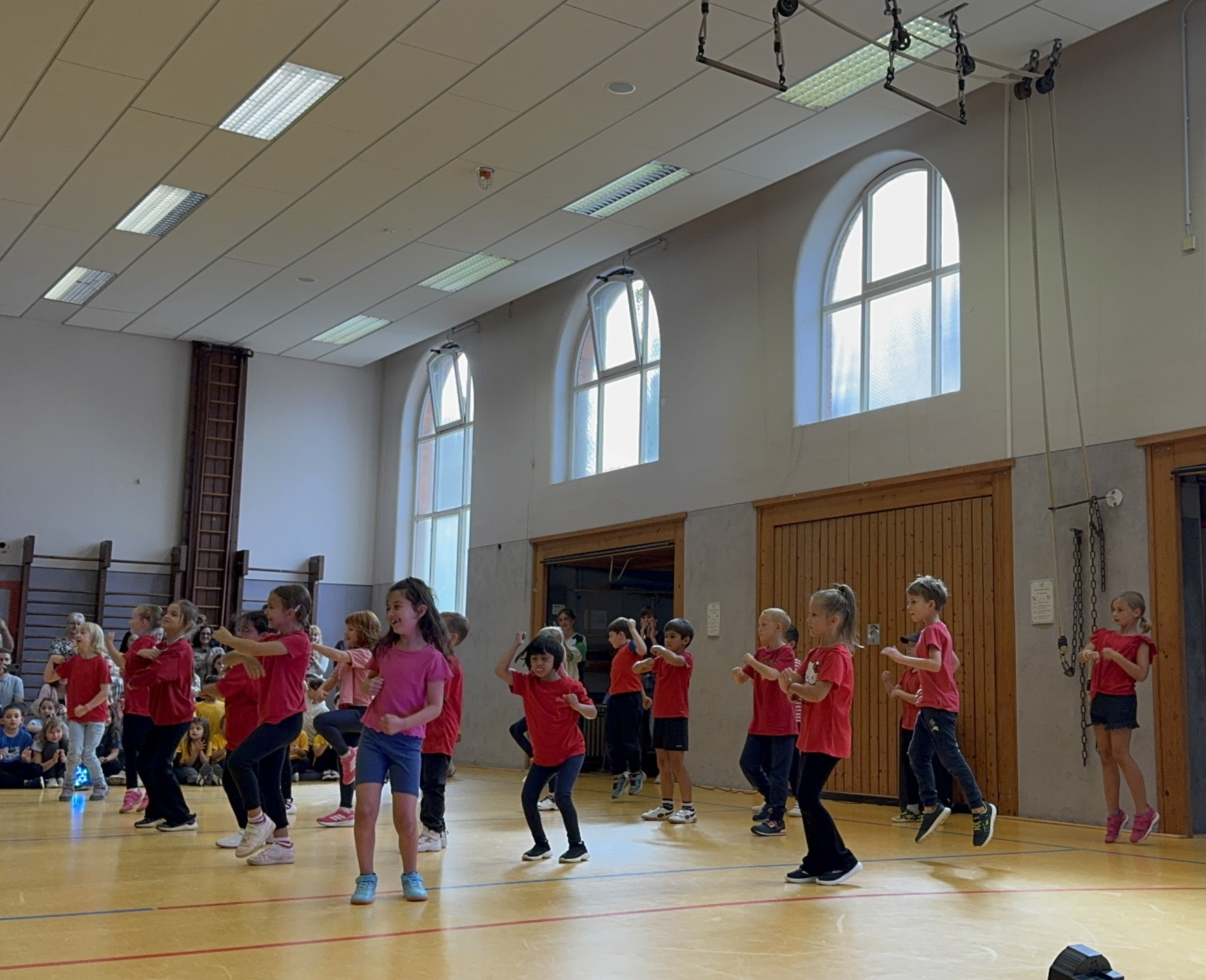 Heute startete unsere Projektwoche. Das Tanzen hat allen Klassen sehr großen Spaß gemacht. Neben dem Tanztraining gibt es für alle Klassen weitere tolle Angebote. Auf dem Schulhof bauen wir beispielsweise einen Barfußpfad aus nachhaltigen Materialien. Auf den Bildern sind Eindrücke vom Tanztraining unserer Otterklasse (1c).