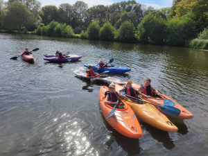 Ganz neu in unserem AG-Programm ist die Kanu-AG. Zusammen mit dem Kanuzentrum Hildesheim können junge Outdoorfans Hildesheims Gewässer erkunden. Wir begannen mit einer fachlichen Einführung und konnten bei schönem Wetter unsere ersten Paddelschläge probieren. Auch die „Feuertaufe“, den Ausstieg aus einem umgedrehten Boot meisterten die Viertklässler souverän. Wir freuen uns sehr auf die kommenden Ausfahrten.
