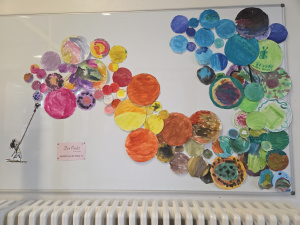Unser Schulgebäude wird immer bunter und schöner. Nach unser Projektwoche schmücken viele neue Kunstwerke unser Schulgebäude. Vielen Dank auch an unseren Hausmeister. Der alle unseren alten Pinnwände in mühevoller Arbeit ausgetauscht hat.