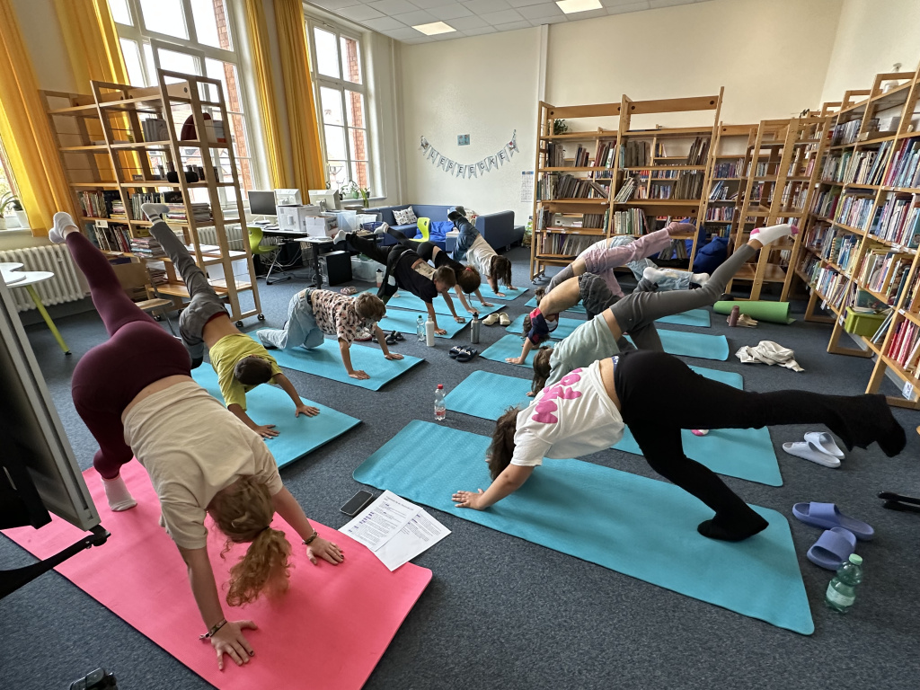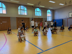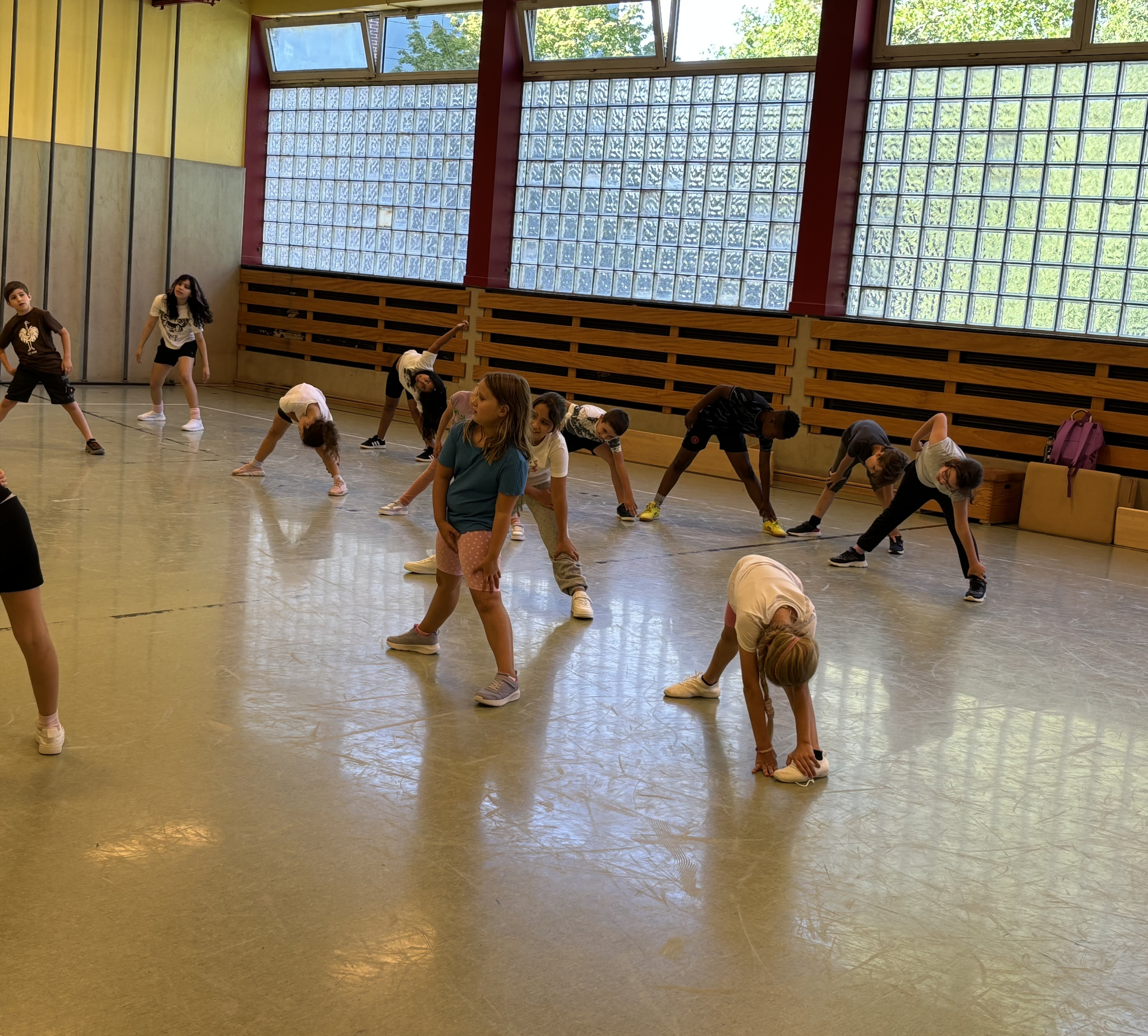 Leider neigt sich unsere Projektwoche langsam dem Ende entgegen. Überall sind glückliche Gesichter zu sehen und überall im Haus wird getanzt und man hört Musik. Heute gibt es ein paar Bilder vom Yoga-Angebot und vom Tanztraining unser 2b. Morgen findet dann die große Generalprobe statt, bei der wir alle Tänze zu sehen bekommen. Das Schulfest kann kommen!