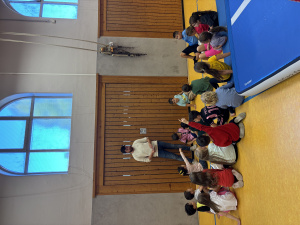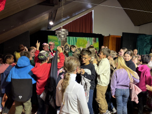 Zum Abschluss unserer Elisabethwoche gab es ein weiteres tolles Hightlight. Mit allen unserern Klassen haben wir in unserer Sporthalle „das verflixte Käsebrot“, ein tolles Theaterstück vom Nimmelandtheater angesehen. Wir haben gelacht, mitgesungen und hatten viel Freude. Im Anschluss besuchte der Schauspieler noch einige Klassen. Wir konnten Fragen stellen und es gab sogar Autogramme. Es war ein gelungener Abschluss einer tollen Woche.Elisabethwoche Tag 2 – Gottesdienst und Basteltag (19.11.2024)