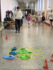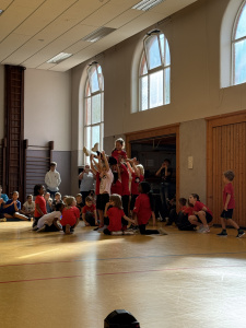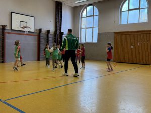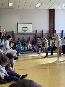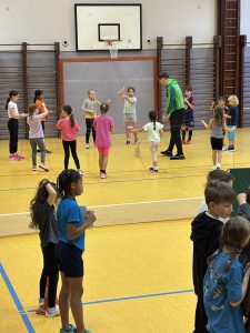 Wie jedes Jahr findet in unserer Halle das Springseilprojekt „Skipping-Hearts“ statt. Dieses Jahr nahm unsere Klasse 4b teil. Zu cooler Musik wurden verschiedene Sprünge unter Anleitung eines Profis allein und mit Partner geübt. Am Ende gab es sogar eine Aufführung für unsere anderen Klassen. Wie jedes Jahr war es wieder ein toller Sporttag der allen viel Freude bereitet hat.