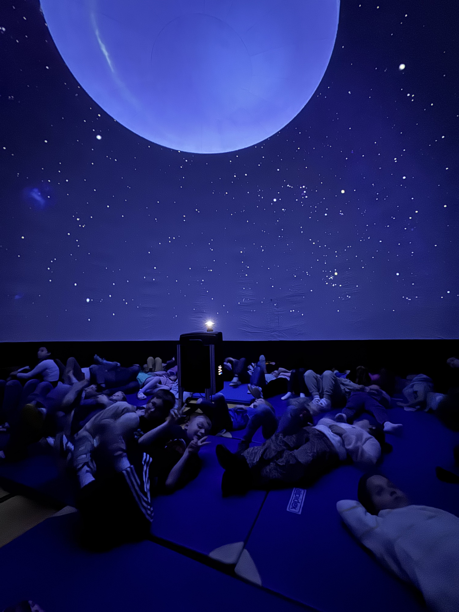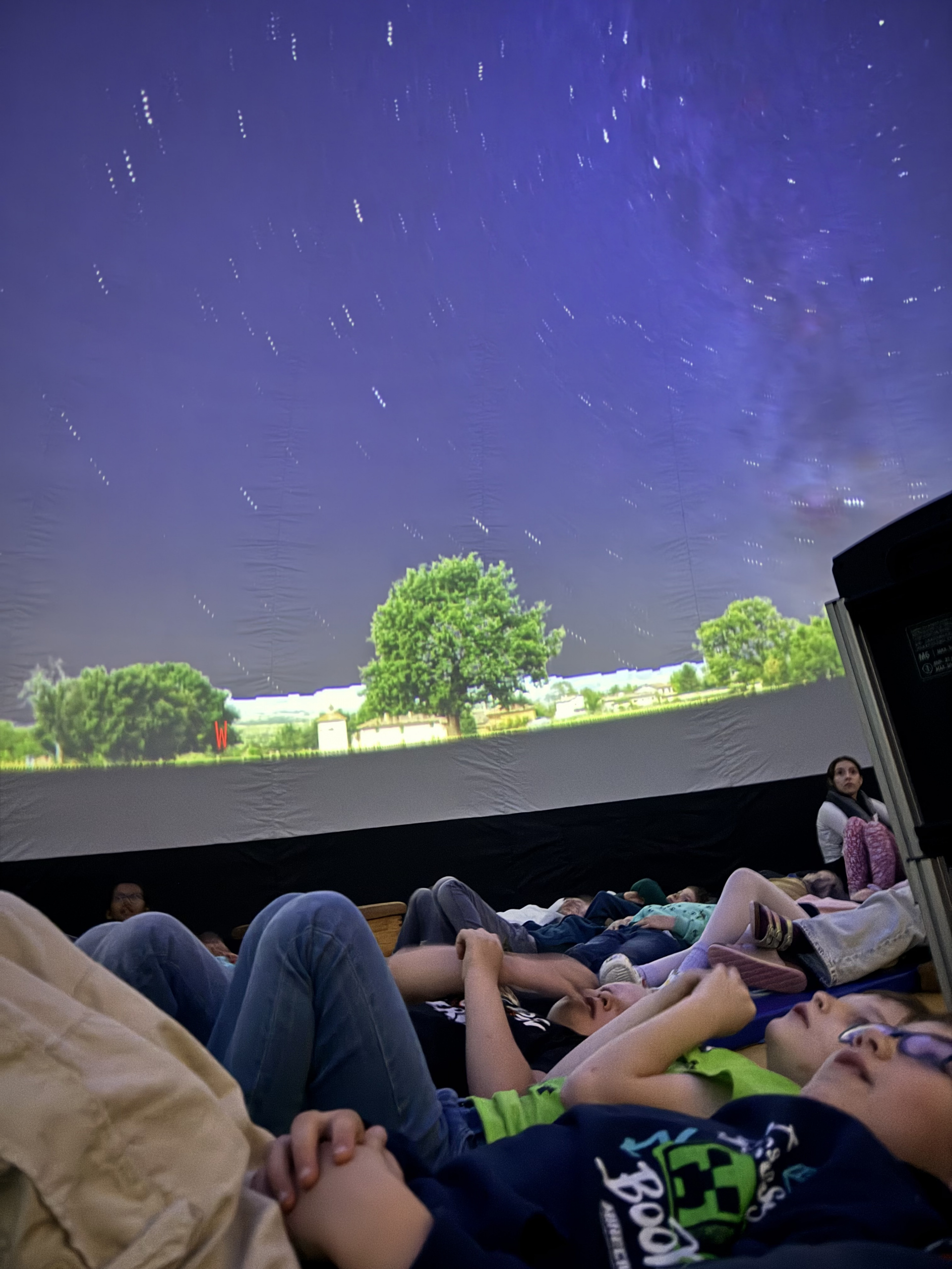 Heute stand in unserer Sporthalle eine riesengroße Kuppel, die alle Neugierig machte. Was war los? Wir hatten heute ein mobiles Planetarium zu Besuch. Alle Jahrgänge durften eine Schulstunde lang es sich in dieser Kuppel gemütlich machen und einen Blick in unsereren Sternenhimmel werfen. Dabei wurden uns kindgerecht die Sternbilder, unsere Nachbarsplaneten und viele weiter interessante erklärt. Es war eine super spannende und tolle Stunde.