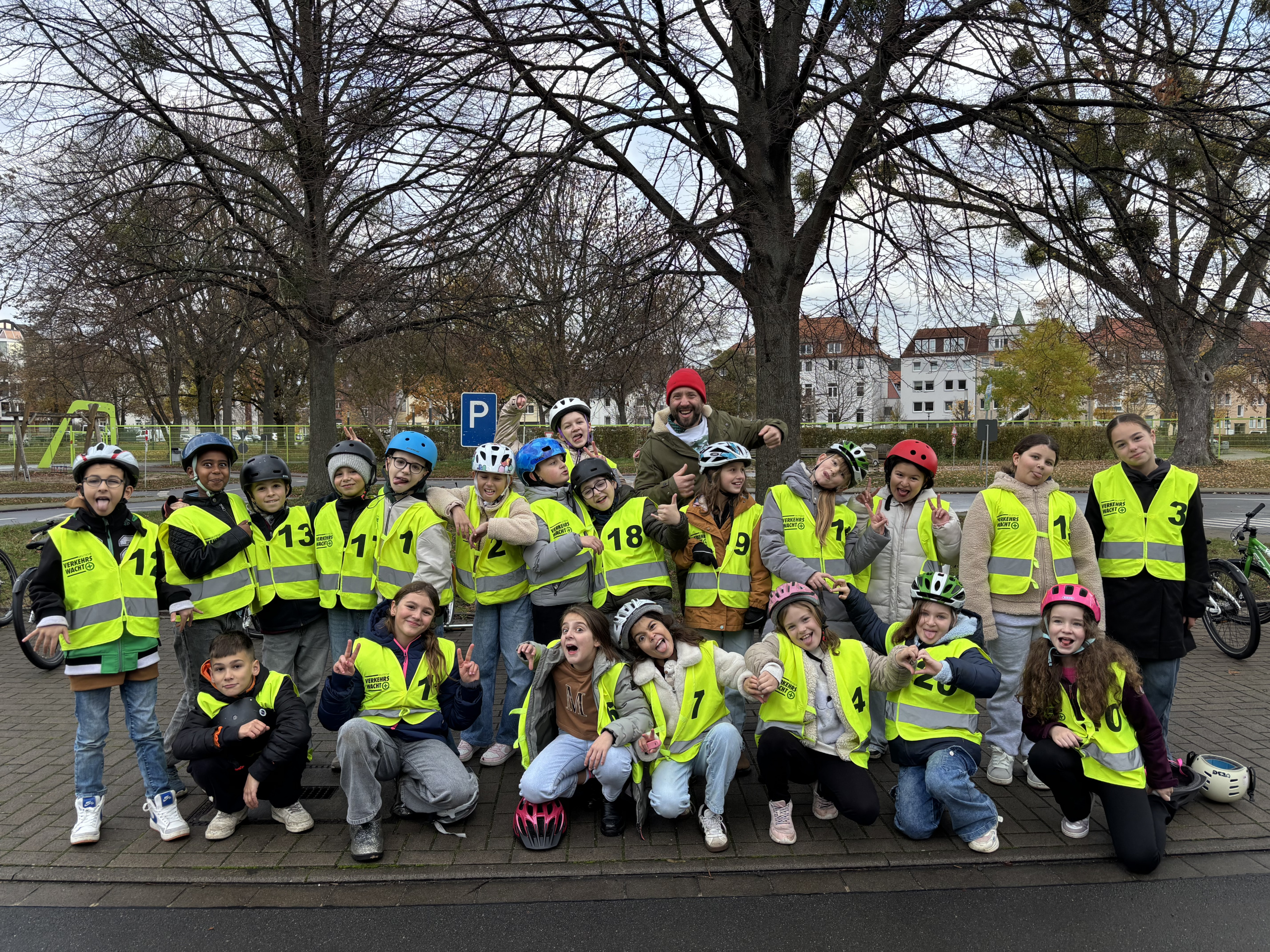 Es ist eine Tradition, die alle kennen, die in Hildesheim in eine Grundschule gegangen sind. Unsere vierten Klassen haben auf dem Verkehrsübungsplatz ihre Fahrradprüfung absolviert. Viermal haben wir vor Ort mit Fahrrädern, Kattcars und als Fußgänger die Verkehrsregeln geübt. Zum Abschluss gab es dann das obligatorische Abschlussfoto, welches demnächst in der Hildesheimer Allgemeinen Zeitung erscheint. In dieser Woche waren wir dann zum Abschluss unserer Einheit „Sicher im Straßenverkehr im Busdepot der Stadtwerke, wo wir eindrücklich die Gefahren des Toten Winkels gezeigt bekommen haben. Wie immer hat uns bei beiden unser Polizist Herr Limmer begleitet. Vielen Dank für die tolle Unterstützung.