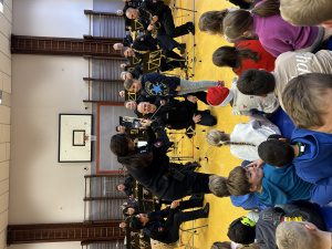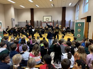 Am letzten Tag im Februar verwandelte sich unsere Sporthalle in einen Konzertsaal. Ein kleines Streichorchester vom Theater für Niedersachsen (TfN) war für eine Unterrichtsstunde in unsere Schule gekommen. Außerdem war noch ein Querflötenspieler dabei und natürlich ein Dirigent. Gespannt nahmen unsere 3. und 4. Klassen auf den Turnmatten Platz. Nach der Begrüßung durch den Dirigenten erklang auch schon das erste Stück von Edvard Grieg, einem norwegischen Komponisten. Was für ein schöner Klang! Anschließend wurden die einzelnen Streichinstrumente und ihre Spielweise vorgestellt und die Querflöte stellte sich ebenfalls vor. Sie klingt wie ein Vogel. Bei einem weiteren Musikstück wurden die Saiten der Streichinstrumente nicht mit dem Bogen gestrichen, sondern nur gezupft. Das hörte sich sehr lustig an. Immer wieder fragte uns der Dirigent welche Bilder in unseren Köpfen entstehen, wenn wir die Musik hören. Das ist bei jedem Kind anders. Das bekannteste Stück war “Die kleine Nachtmusik“ von Wolfgang Amadeus Mozart. Und jetzt konnten einige Kinder selbst einmal ausprobieren Dirigent/Dirigentin zu sein. Und die Musiker machten wirklich, was die Kinder mit ihren Händen vorgaben! Nach dem herzlichen Schlussapplaus versprach der Dirigent wieder einmal mit dem Orchester in die Elisabethschule zu kommen.