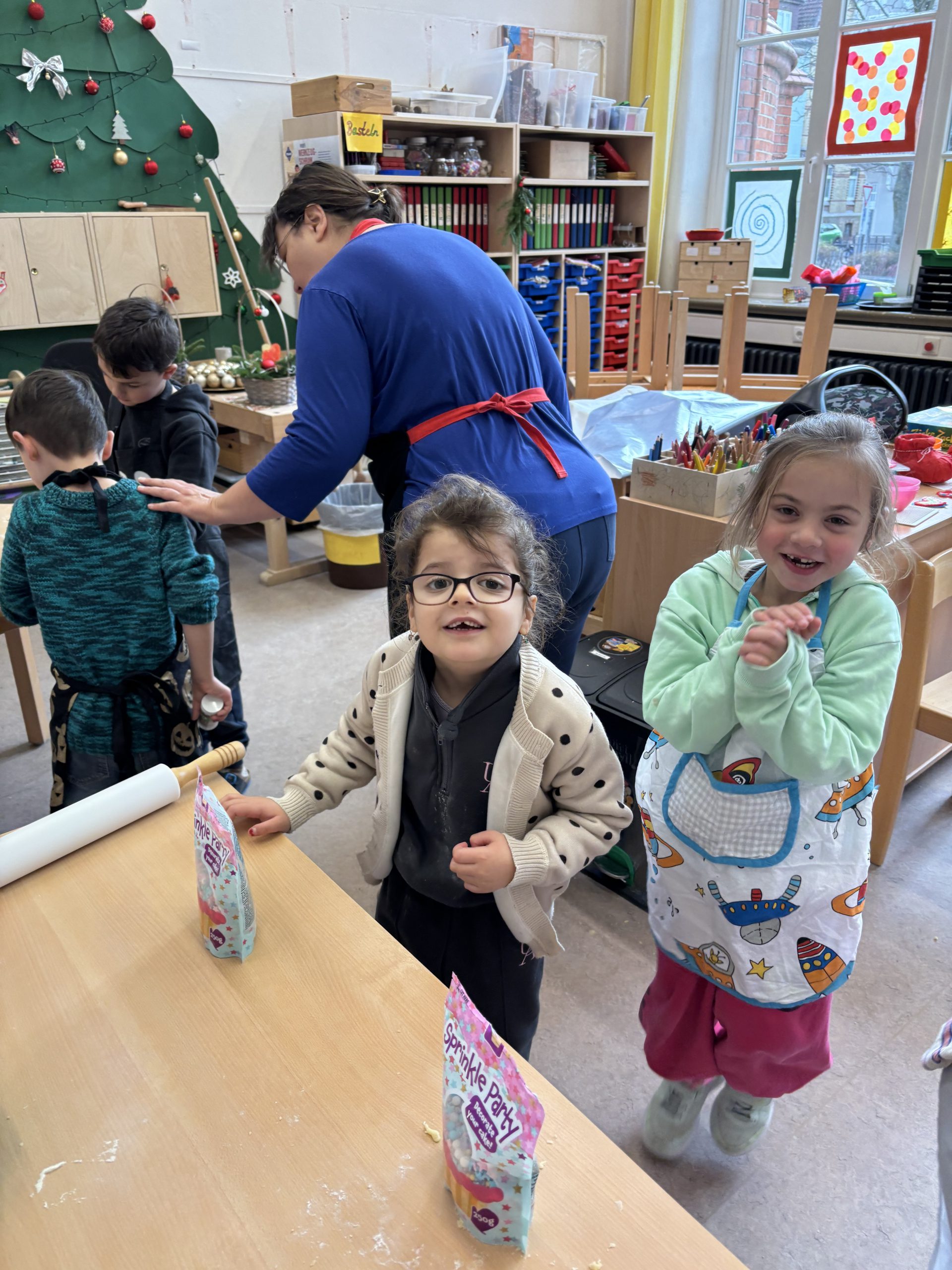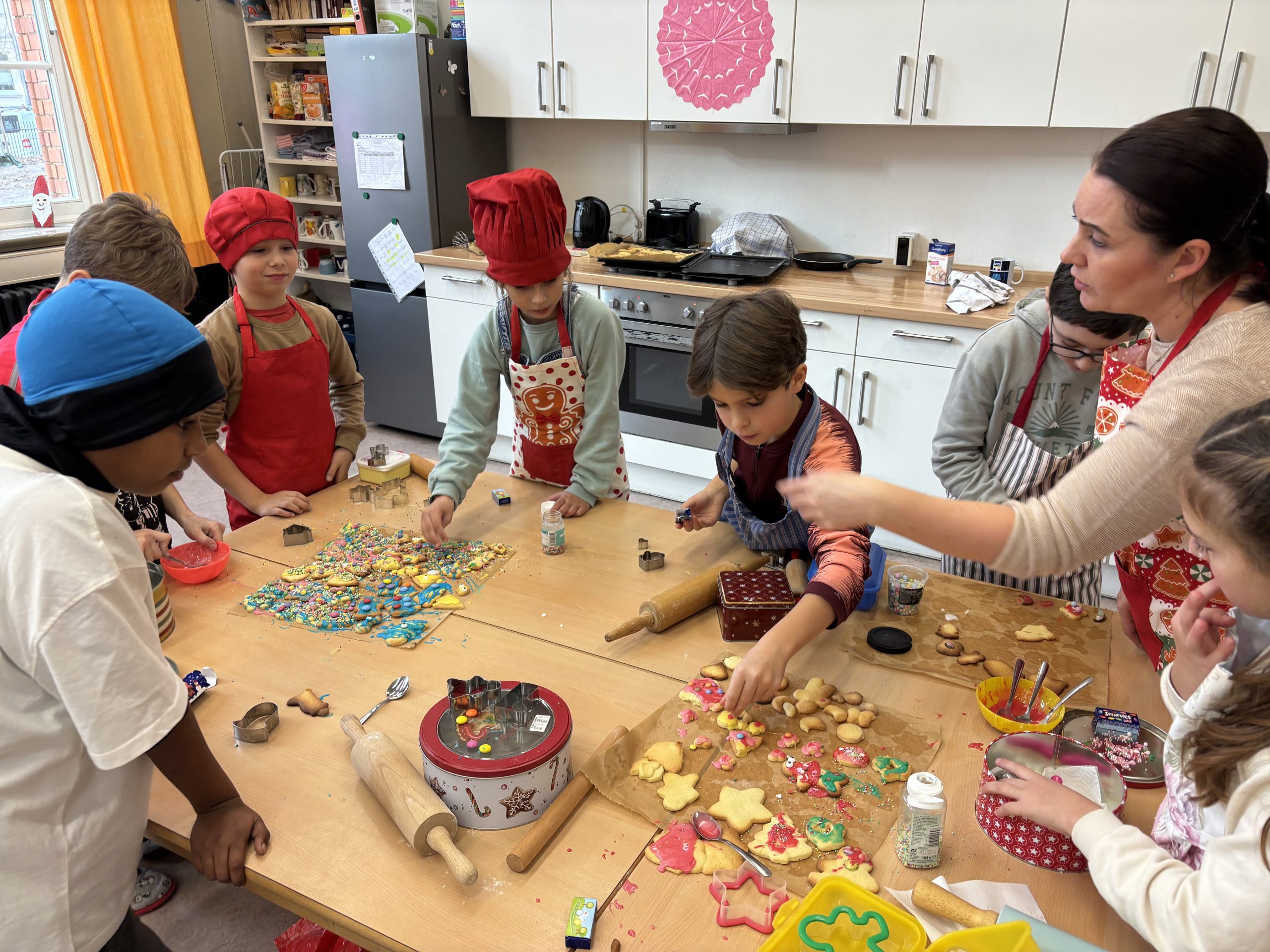 In unserer Schule sieht es nicht nur weihnachtlich aus, seit der letzten Woche riecht es aus regelmäßig nach Weihnachten auf allen Etagen. Unsere pädagogischen Mitarbeiter backen jeden Tag mit einer anderen Klasse leckere Kekse und sorgen so für eine noch weihnachtlichere Stimme. Vielen Dank an die Weihnachtsbäckerei für die Organisation dieser tollen Aktion.