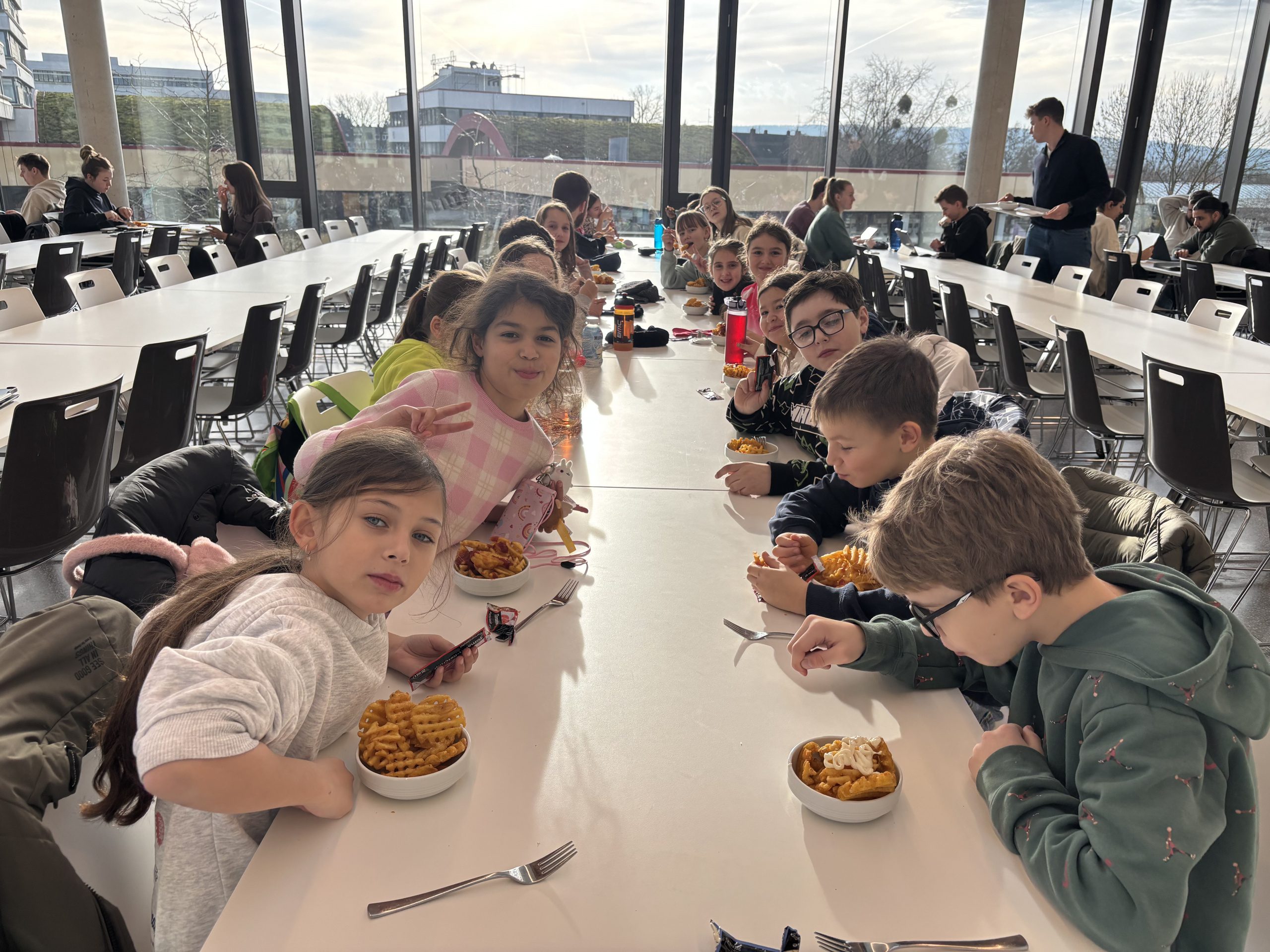 Die Studentinnen und Studenten des Leseclubs haben unsere Klasse 4a zu einem tollen Lesprojekt in die Uni eingeladen. Vorher waren wir in der Uni-Mensa Pommes essen. Danach ging es zum Bühler Campus. Dort wurden uns viele spannende Bücher vorgelesen und wir hatten eine tolle Zeit mit den Studierenden. Vielen Dank für die Einladung und die nette Aktion.